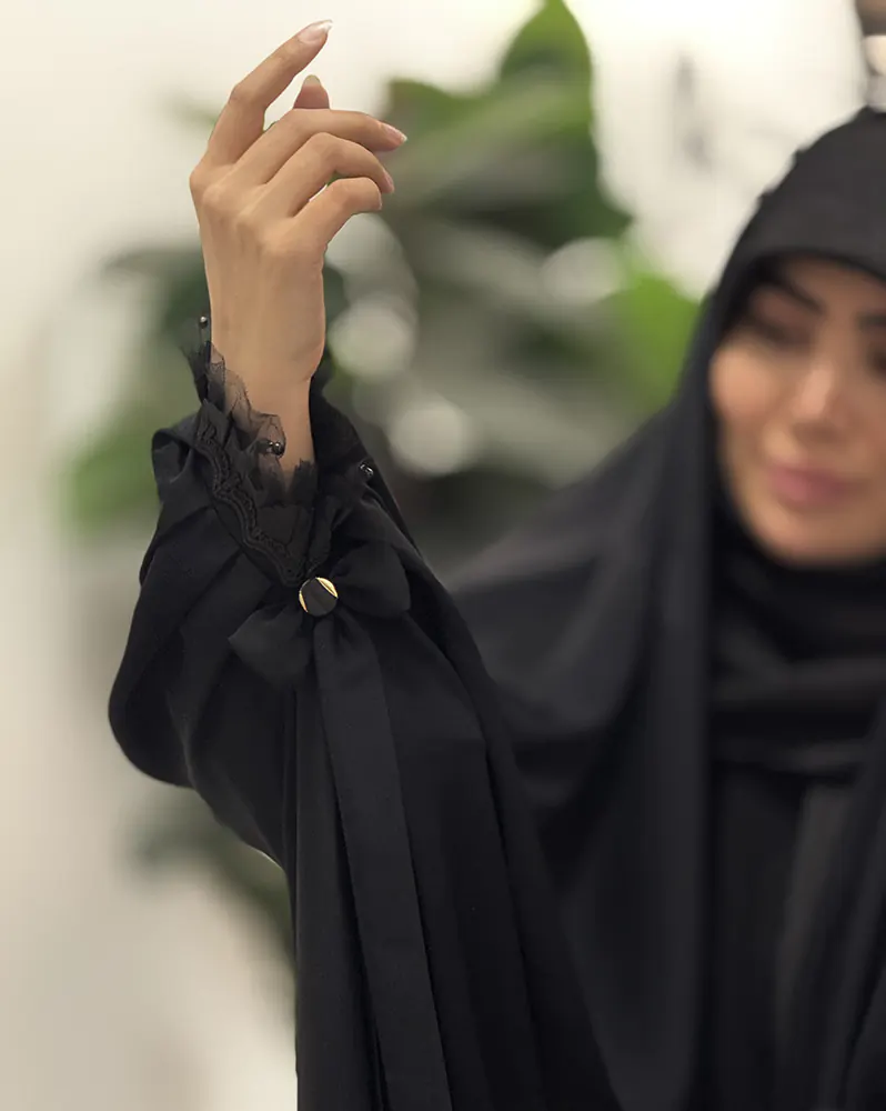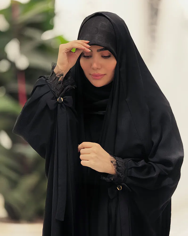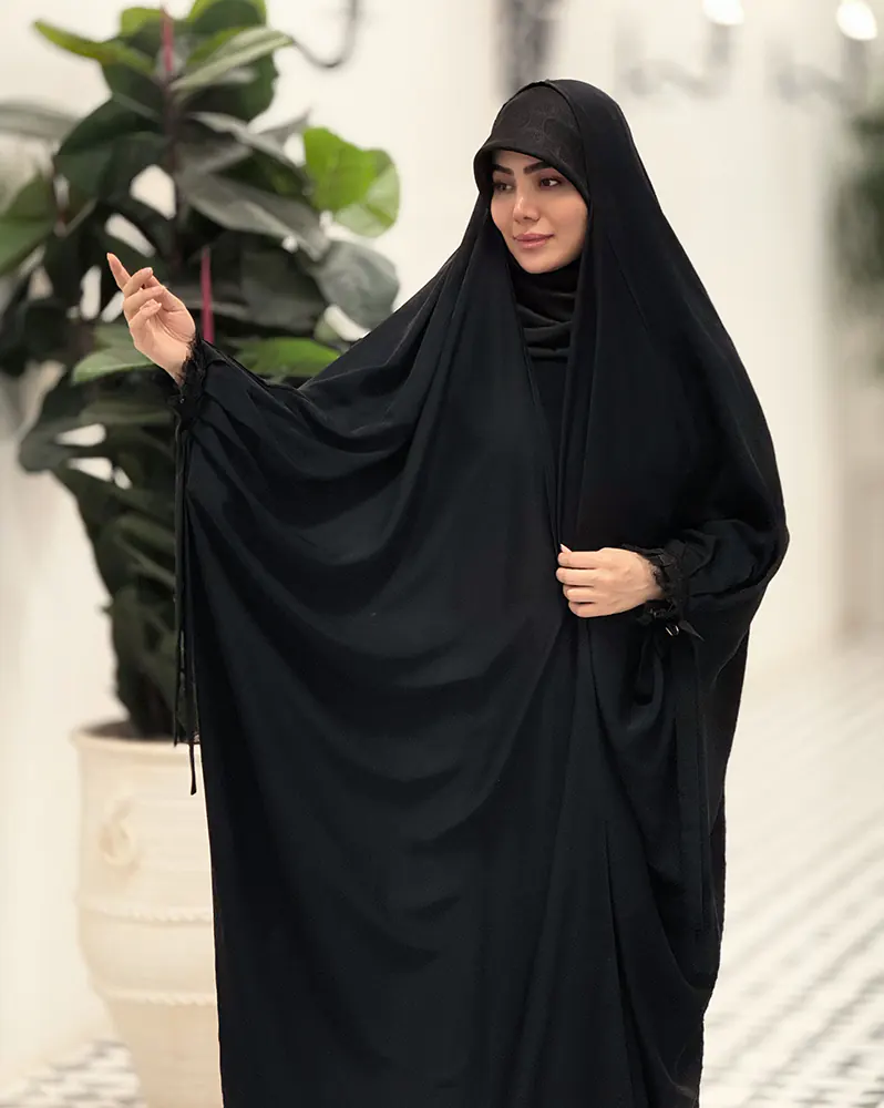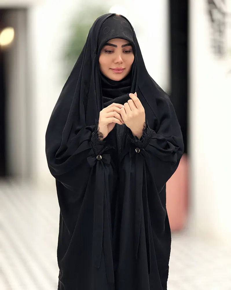 سرآستین پاپیون کار شده و چادر مچ‌دار هست