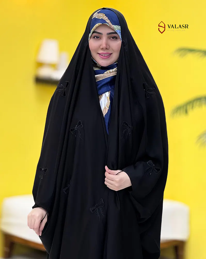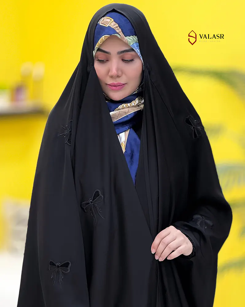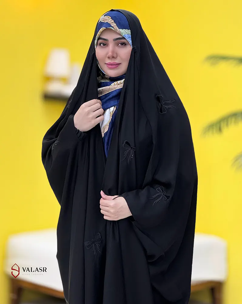چادری زیبا از دسته گلدوزی با نام پاپیون مخمل پراکنده